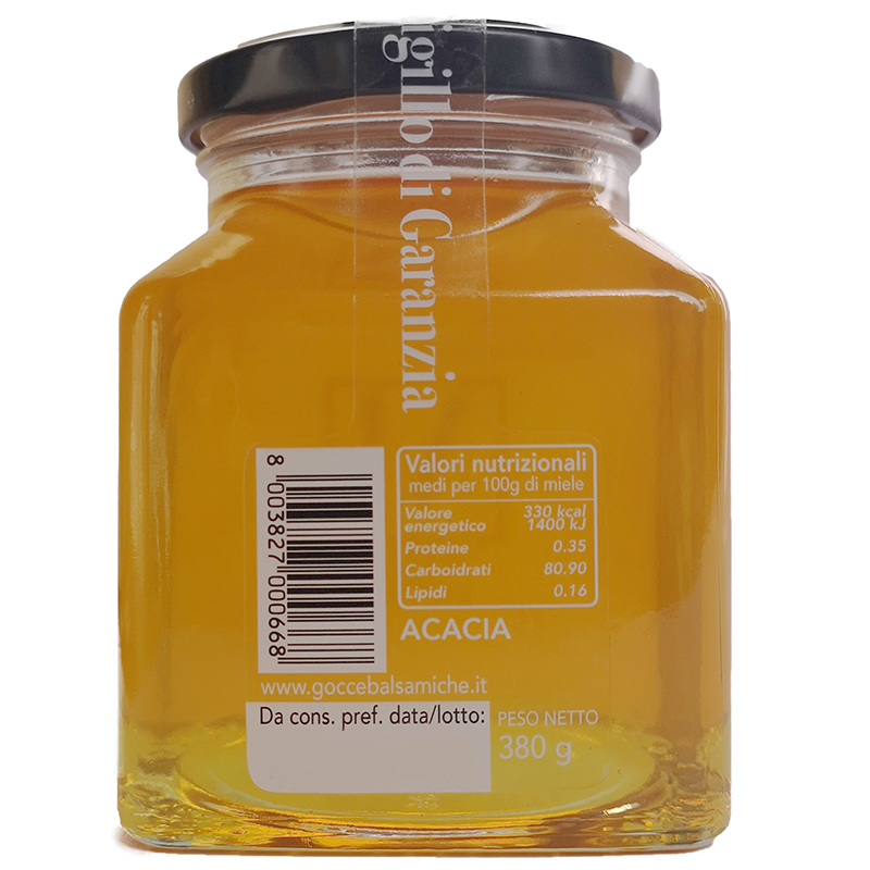 Il Miele di Acacia si presenta di colore bianco quasi trasparente, presenta un aroma tenue, in genere rimane liquido per il suo alto contenuto di levulosio.